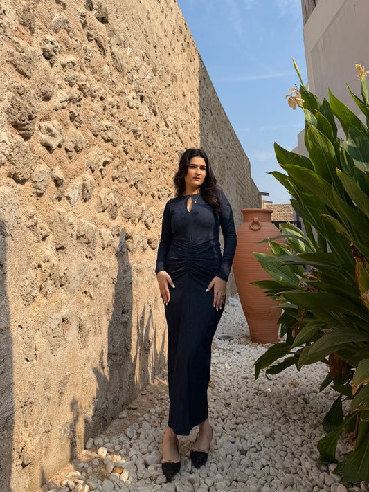 Rich, deep blue denims are layered with contrast structured details—sharp seams, sculpted panels, and reinforced silhouettes—that bring warmth, strength, and definition to every piece. Heavier fabrics, compact weaves, and precise tailoring create a sense of protection against the cold, while contrasting stitching, and architectural overlays add visual depth and modern edge.