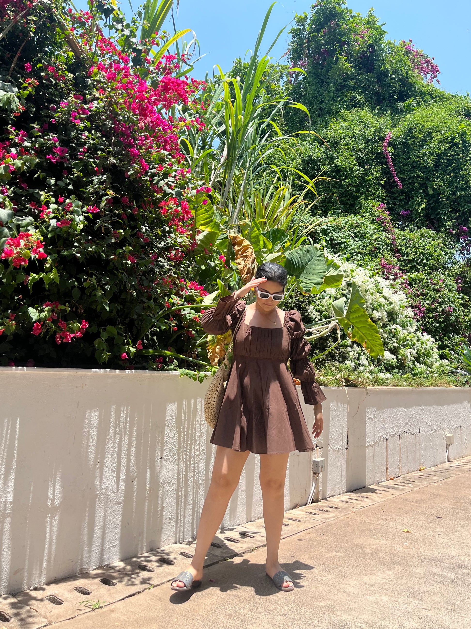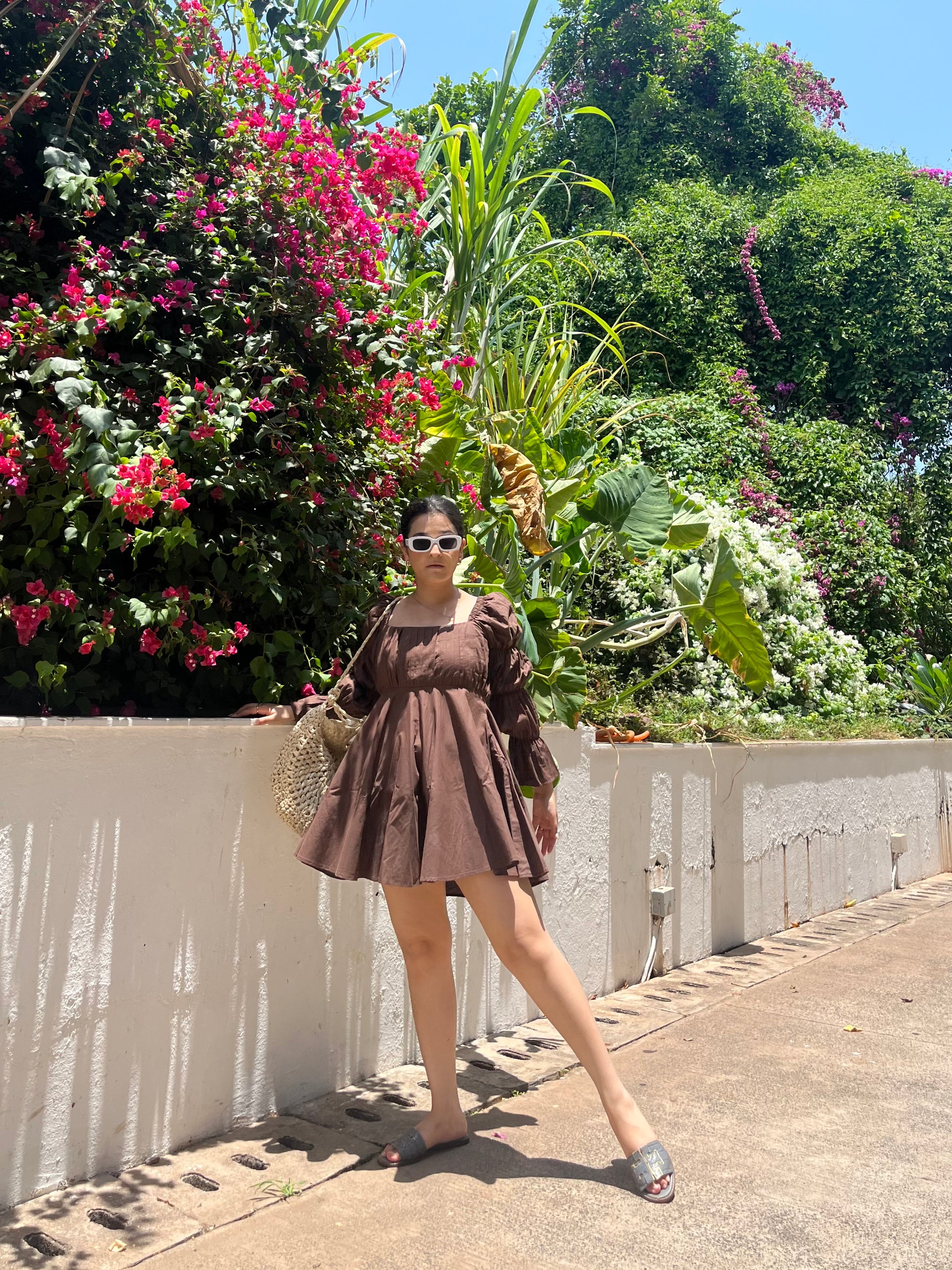 The earthy brown hue of this dress evokes a sense of warmth and natural beauty. It's a color that complements all skin tones, adding a touch of timeless charm to your summer wardrobe. With its neutral palette, this ensemble serves as a versatile canvas for expressing your unique sense of style. Our Daisy dress in tangerine flaunts a square neckline, comes with a draped pleated yoke, has a side zipper for that perfect fit and it has our signature Bubble sleeves. The moment you wear this dress you will fall in love with it.