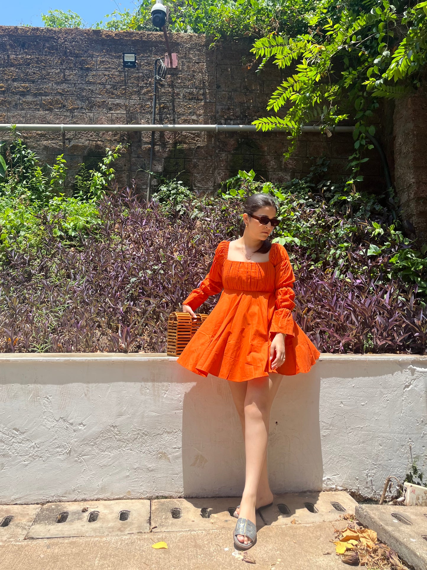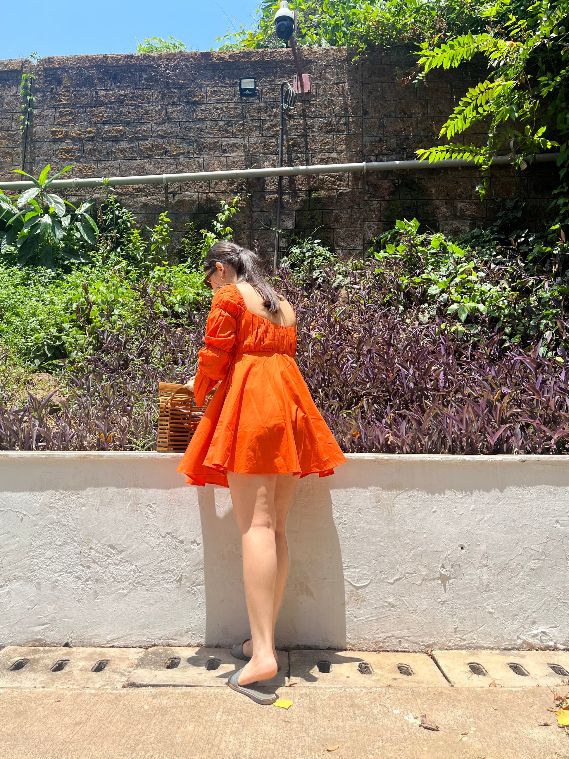 Immerse yourself in the ethereal charm of summer with our captivating tangerine dress. This dress is a breath of fresh air, exuding a sense of tranquility and feminine grace that perfectly captures the essence of the season. Also at the same time, the color evokes a playful mood. Our Daisy dress in tangerine flaunts a square neckline, comes with a draped pleated yoke, has a side zipper for that perfect fit and it has our signature Bubble sleeves. The moment you wear this dress you will fall in love with it.