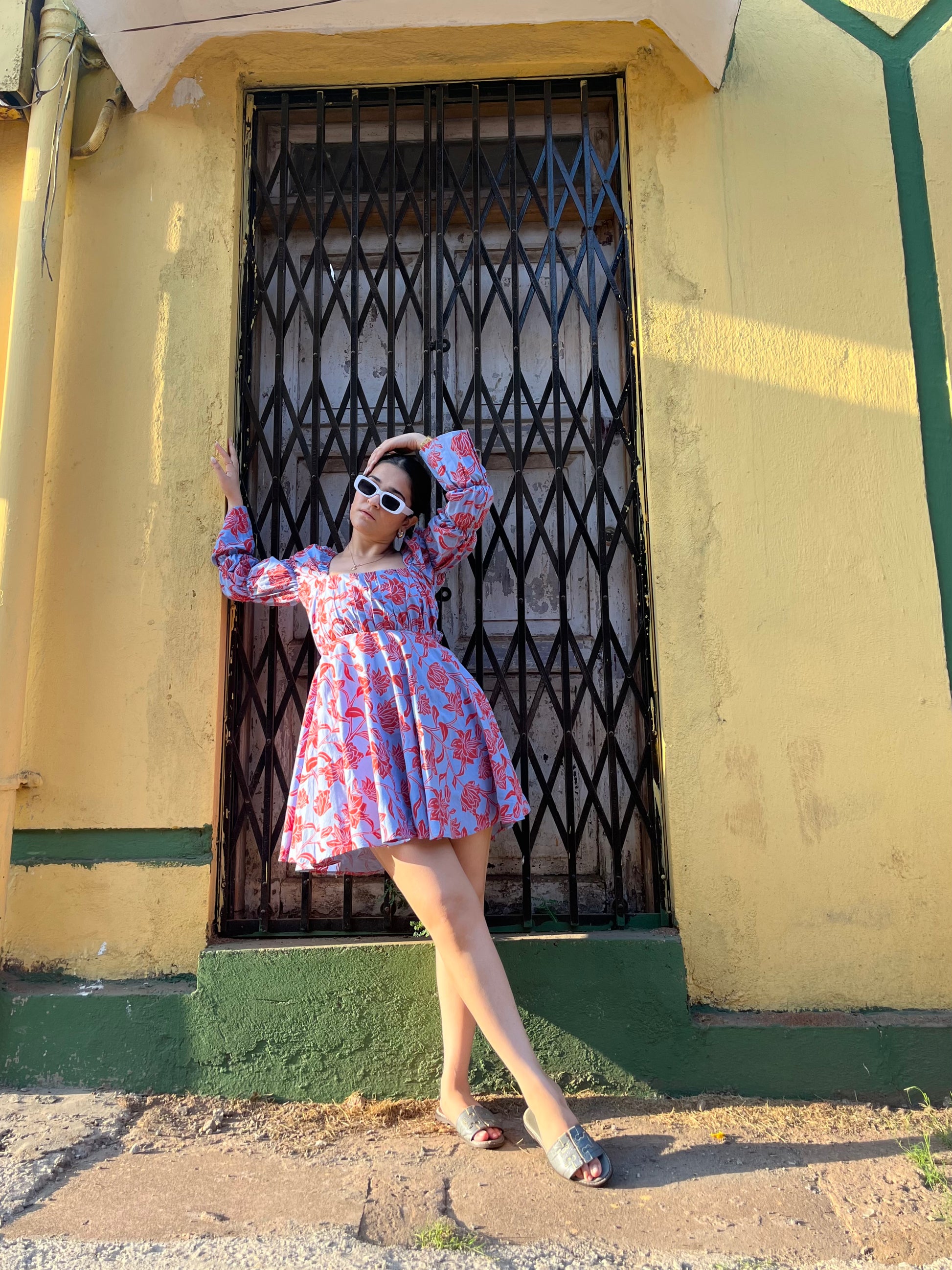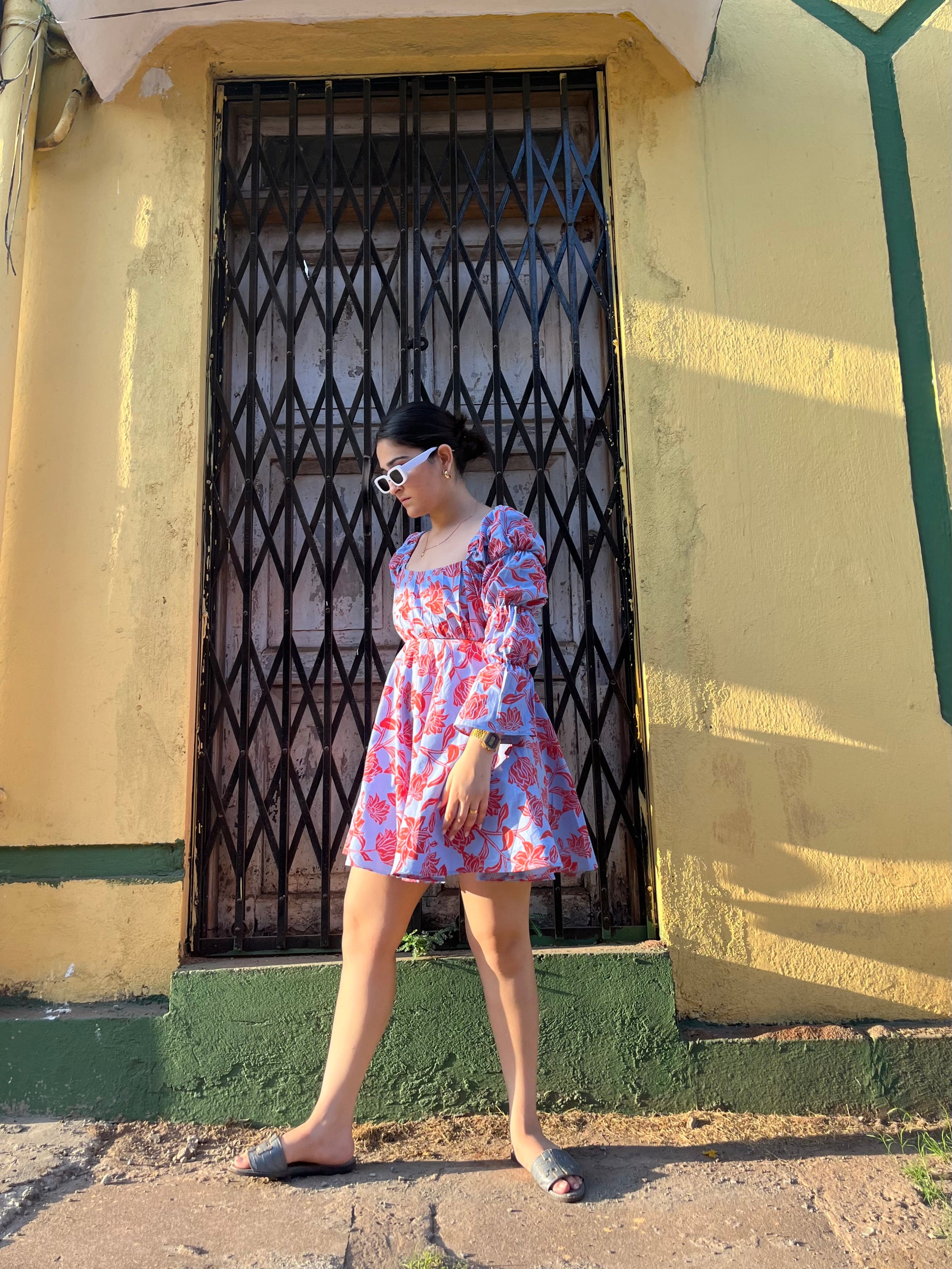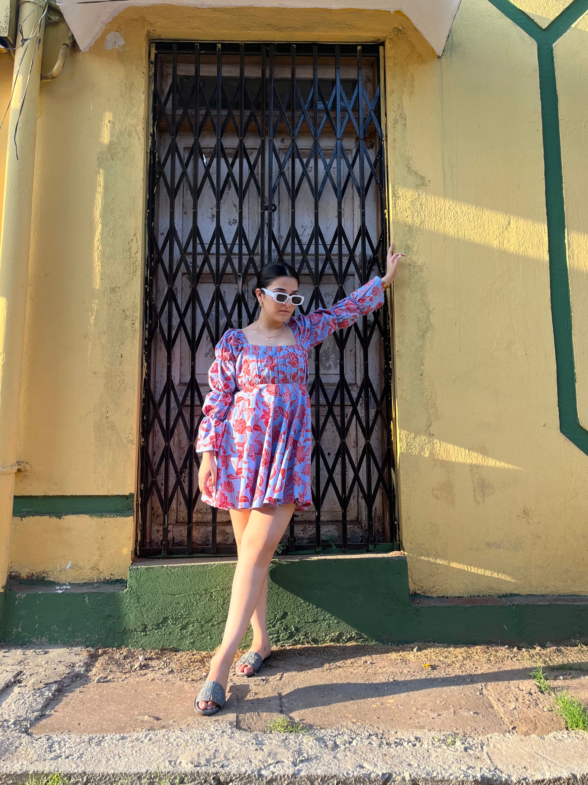 Immerse yourself in the ethereal charm of summer with our captivating light blue dress adorned with a delicate tangerine floral print. This dress is a breath of fresh air, exuding a sense of tranquility and feminine grace that perfectly captures the essence of the season. Our Diana dress flaunts a square neckline, comes with a draped pleated yoke, has a side zipper for that perfect fit and it has our signature Bubble sleeves. The moment you wear this dress you will fall in love with it.