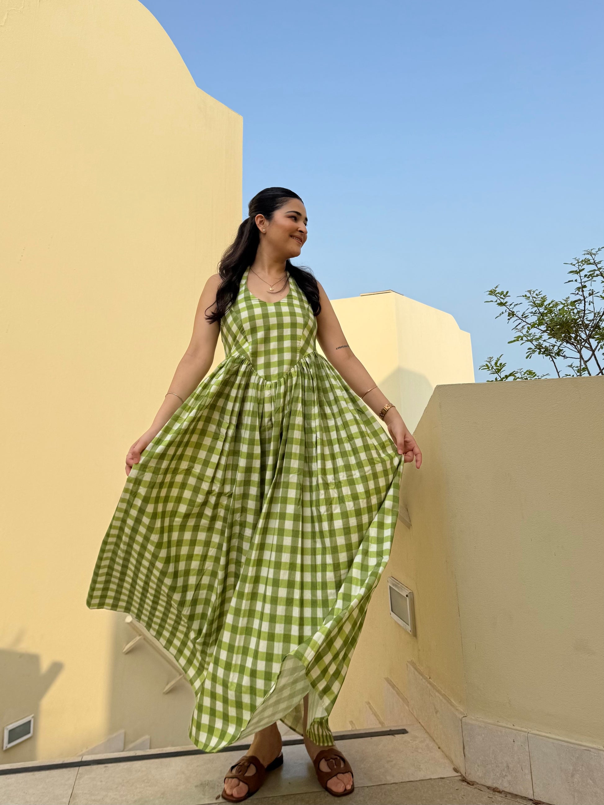 Easy, breezy, and made for sunny days — this halter neck dress is all about laid-back charm with a flattering fit. Made from lightweight printed cotton, it’s super breathable and perfect for warm weather. The tie-up halter neckline lets you adjust it just right, while the elasticated back adds comfort and a little stretch. Whether you’re heading out for brunch, a beach stroll, or just hanging out with friends, this full-length flared dress gives you that effortless “threw-it-on-and-looked-amazing” vibe.