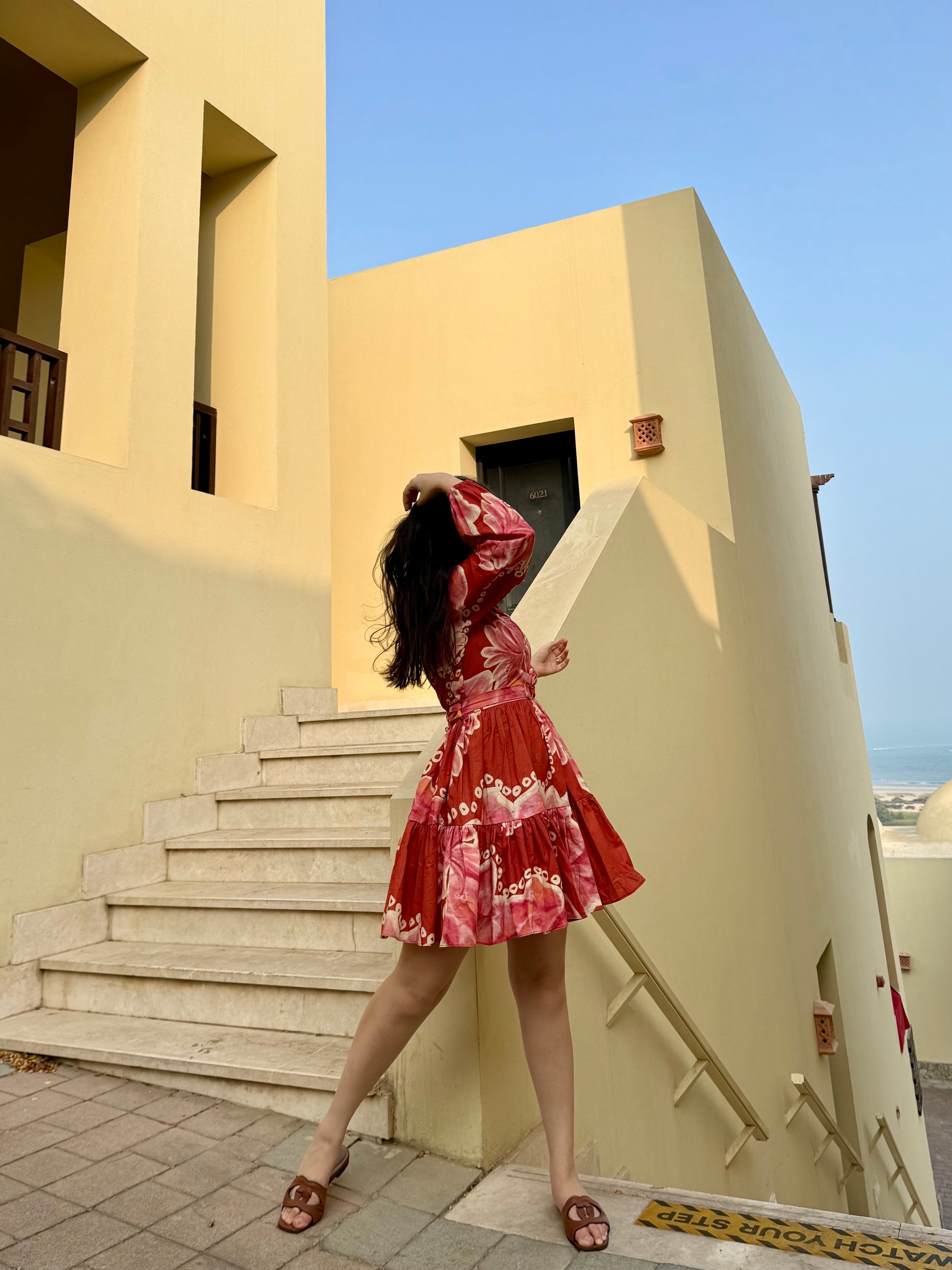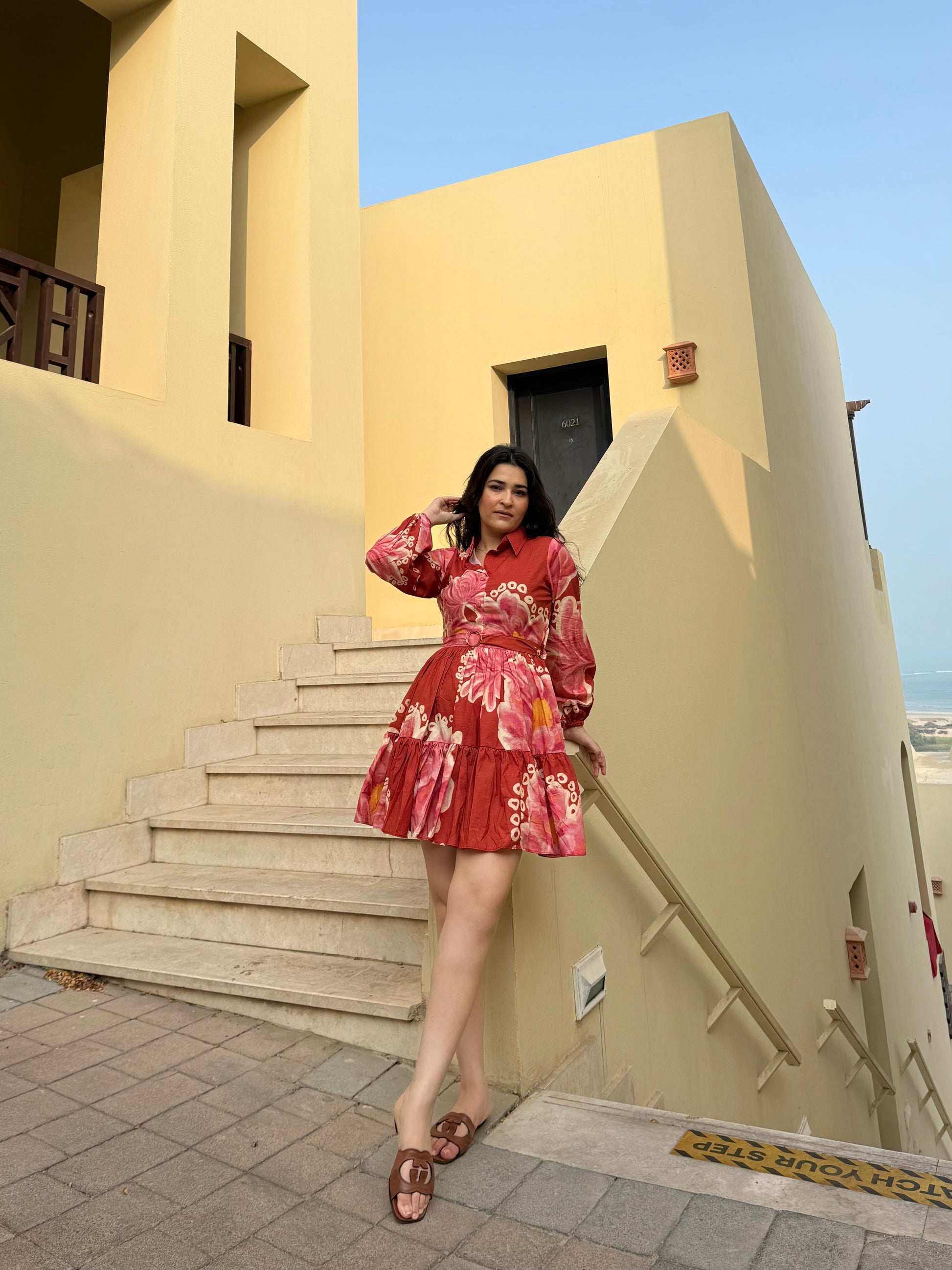 A fresh take on everyday dressing — this short cotton dress brings structure and ease together in one flattering silhouette. Made from soft digitally printed cotton, it features a crisp collar neckline and a defined waist with belt detailing that adds just the right shape. The length is playful, the print is eye-catching, and the styling options are endless — pair it with sneakers for a laid-back day look or dress it up with flats or boots for something more refined.