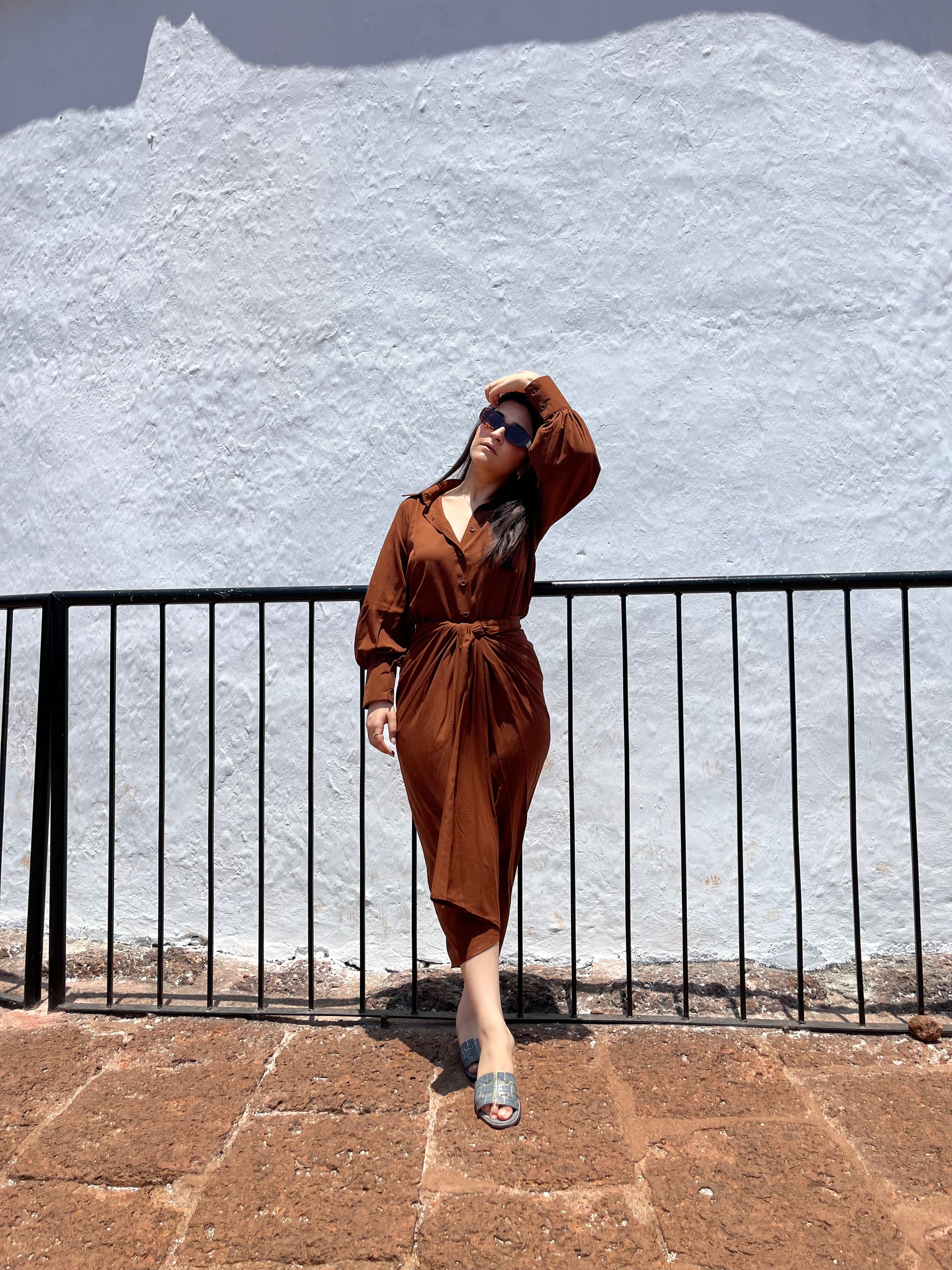 Step into a world of understated sophistication with our Solid Brown Set, featuring a chic shirt and a graceful drape skirt. This ensemble seamlessly combines comfort and style, making it a versatile addition to your wardrobe.