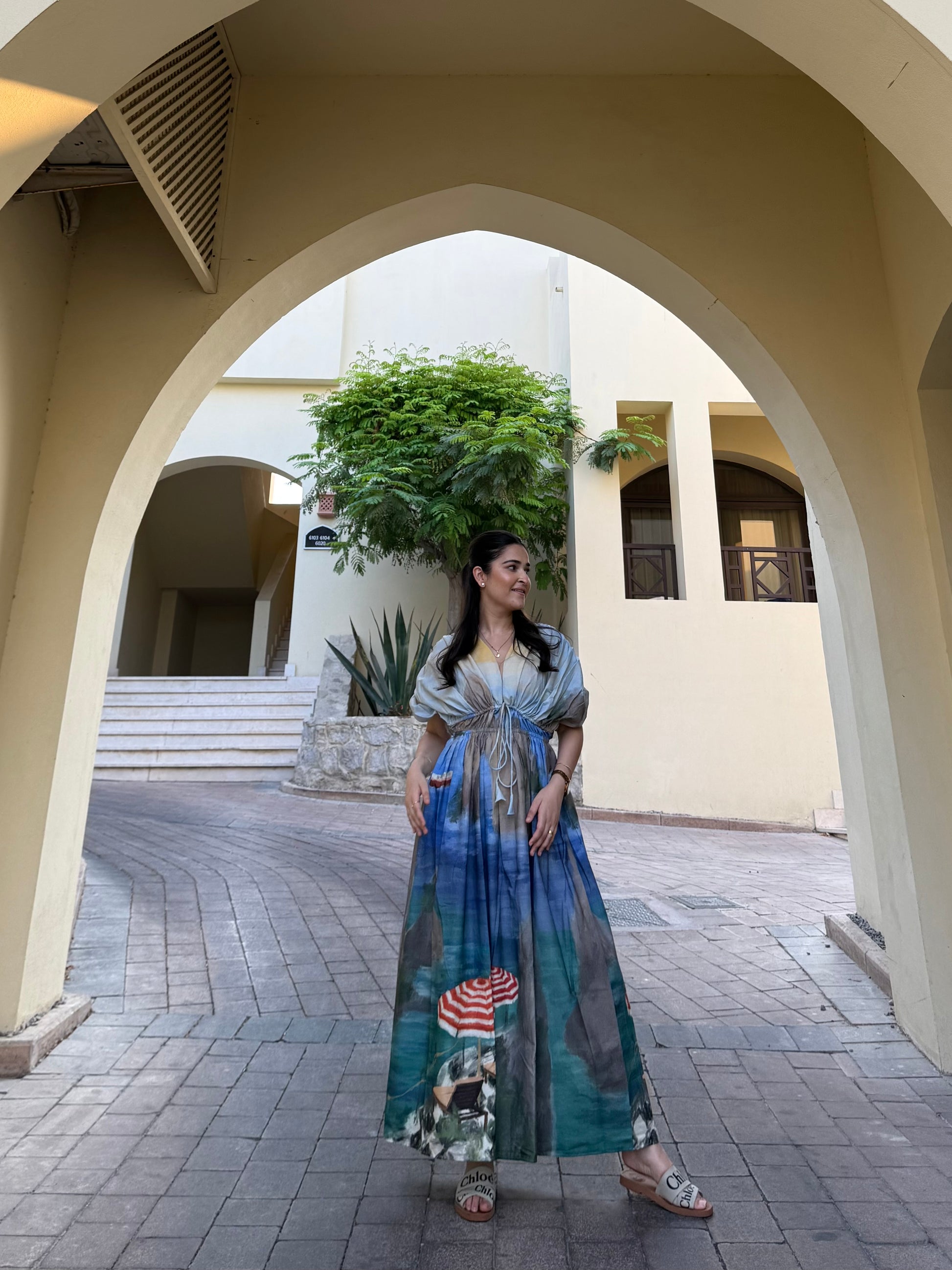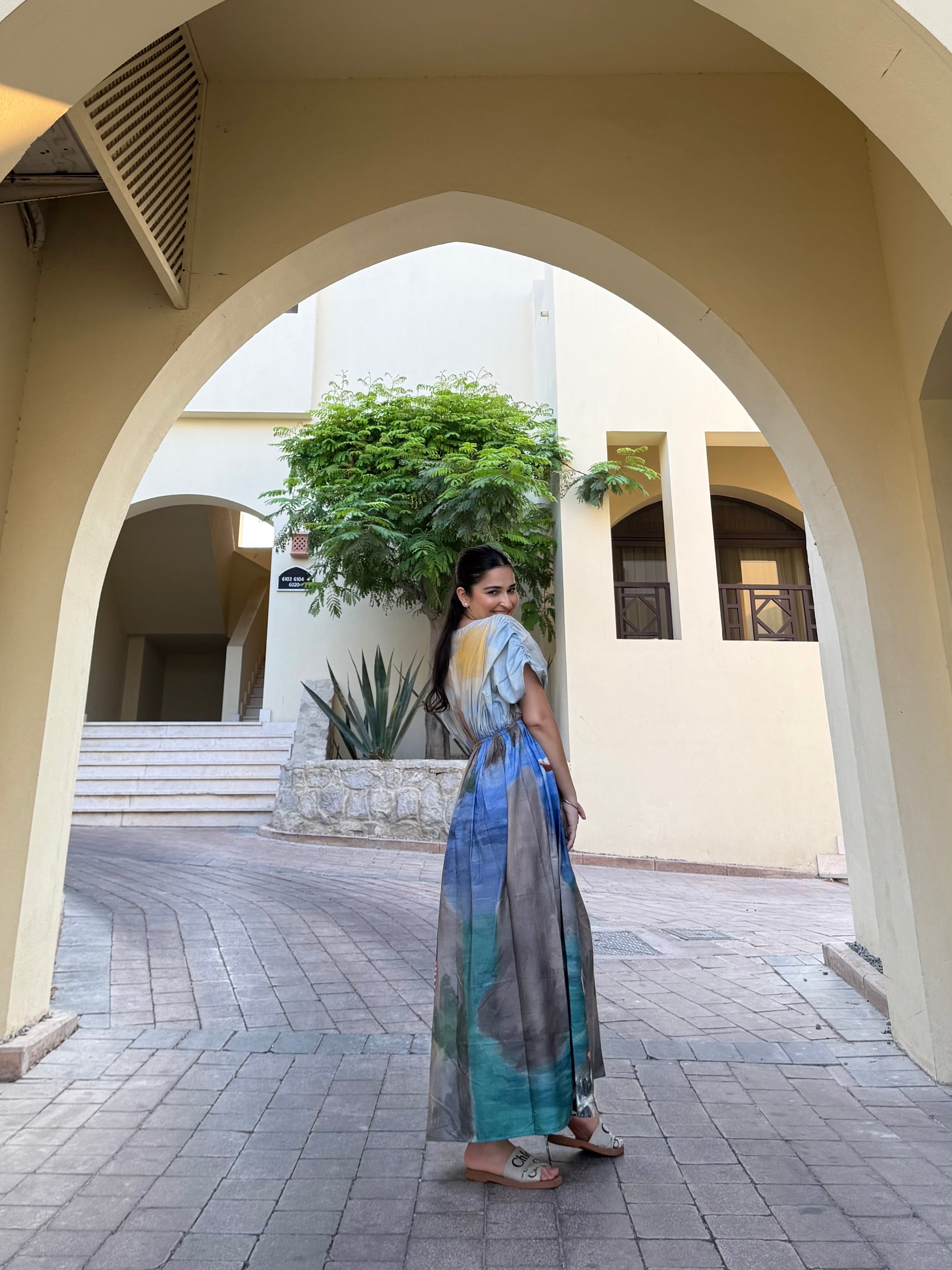 Step into bliss with the "Nirvana" dress, a vibrant twist on our beloved Jade dress. Featuring a brushed stroke print, this dress is like wearing a serene paradise with its dreamy swirls of ocean. The elasticated waist offers a comfortable fit while accentuating your shape, and those voluminous sleeves? They add a playful touch of drama to your every move. Perfect for those days when you want to blend effortless style with a splash of fun, the Nirvana dress brings a fresh, breezy vibe to your wardrobe. Whether you’re heading to a summer soirée or just enjoying a sunny day out, this dress is your ticket to feeling fabulous and floating through life in style!