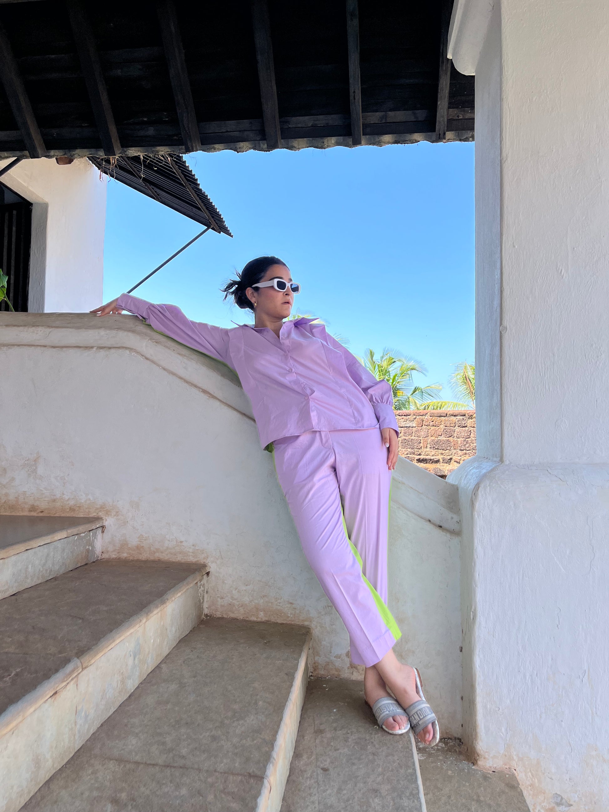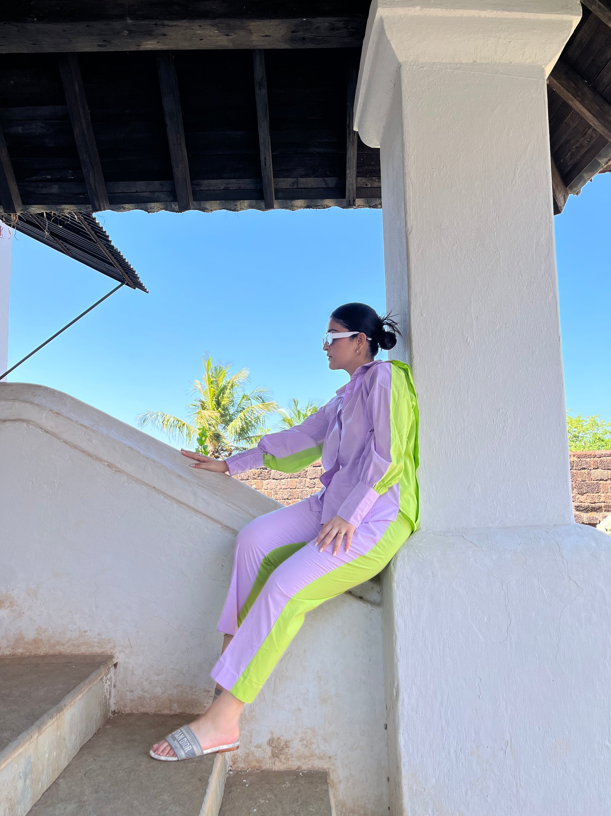 Introducing our Purple Co-ord Set, a striking fusion of regal purple and playful neon. This ensemble is a bold expression of style and individuality. The rich purple exudes sophistication, making it perfect for special occasions or everyday glam. What sets it apart is the captivating neon detail on the back – a pop of color that infuses energy into your outfit without overpowering your look.